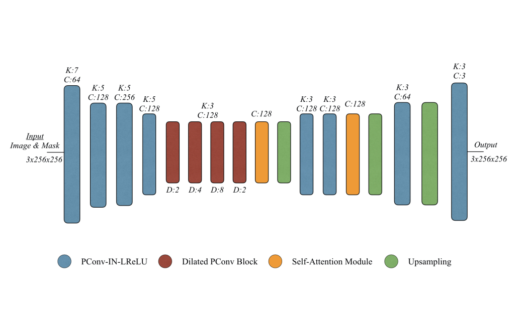 Fashion image understanding is an active research field with a large number of practical applications for the industry. Despite its practical impacts on intelligent fashion analysis systems, clothing image inpainting has not been extensively examined yet. For that matter, we present an extensive benchmark of clothing image inpainting on well-known fashion datasets. Furthermore, we introduce the use of a dilated version of partial convolutions, which efficiently derive the mask update step, and empirically show that the proposed method reduces the required number of layers to form fully-transparent masks. Experiments show that dilated partial convolutions (DPConv) improve the quantitative inpainting performance when compared to the other inpainting strategies, especially it performs better when the mask size is 20% or more of the image.
